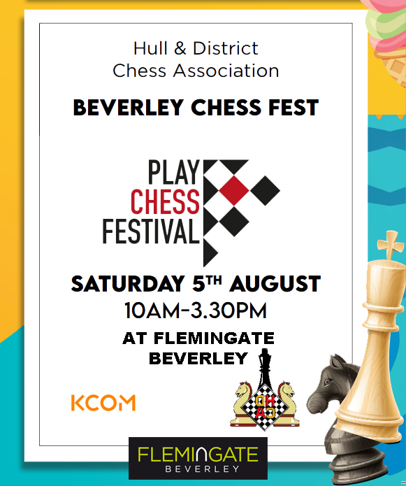 BEVERLEY CHESS FEST is returning to Flemingate after the success of their 1st Chess Fest at Flemingate in 2022. Saturday, 5th August, 10am - 3.30pm Open to everyone of all ages